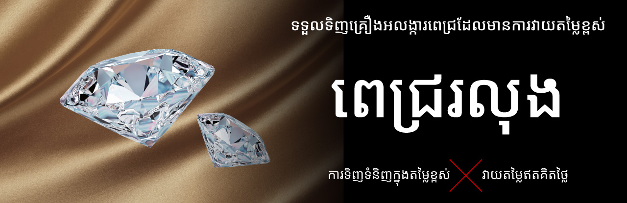 **ពេជ្រ**ត្រូវបានទិញពីអតិថិជនរាប់ពាន់នាក់ជារៀងរាល់ថ្ងៃនៅតាមសាខា **Jewel Cafe** ទូទាំងប្រទេស។ ខាងក្រោមនេះជាឧទាហរណ៍មួយចំនួននៃ**ពេជ្រ**ដែលយើងខ្ញុំបានទិញ។ ប្រសិនបើលោកអ្នកមានចម្ងល់ណាមួយ សូមកុំស្ទាក់ស្ទើរក្នុងការទាក់ទងមកយើងខ្ញុំ។ ប្រសិនបើអ្នកមិនច្បាស់ថាអាចលក់វាបានឬអត់ទេ សូមទាក់ទងមកយើងខ្ញុំជាមុនសិន។
